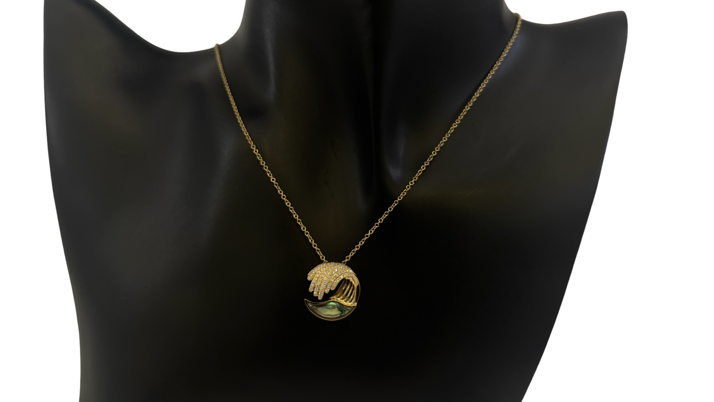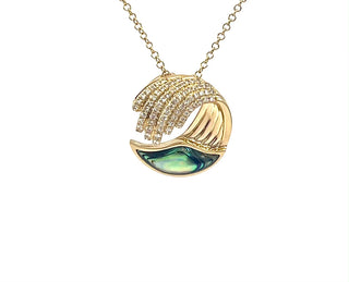 • 14K Yellow Gold 0.55cttw Abalone Shell and 0.17cttw Diamond Wave Necklace