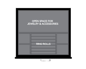 • Additional storage: 3 Lusterloc™ lined, pull-out drawers house 5 additional watches, jewelry and accessory storage. 1 watch drawer, 1 jewelry drawer and 1 open drawer .
