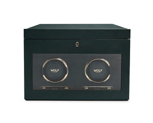 - Storage: 2 winding modules, 2pc watch storage with suspended cushions (cuff will accommodate up to 52mmcase) 1 open compartment, travel case (1pc watch storage, 1 lidded compartment)