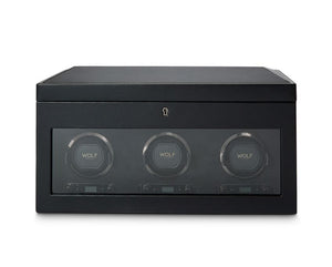 - Storage: 3 winding modules, 4pc watch storage with suspended cushions (cuff will accommodate up to 52mm case) 1 open compartment, travel case (1pc watch storage, 1 lidded compartment)