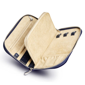 - Storage: 1 earring tab, 1 ring tab, 2 zip compartments, 3 snap-on necklace hooks with pocket