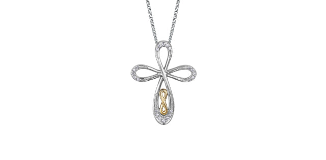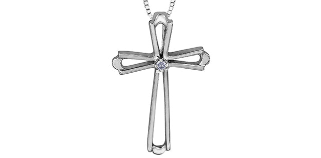 10K White Gold 0.02 cttw Diamond Cross Pendant