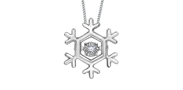 10K White Gold 0.02 cttw Canadian Diamond Snowflake Pulse Pendant, 18"