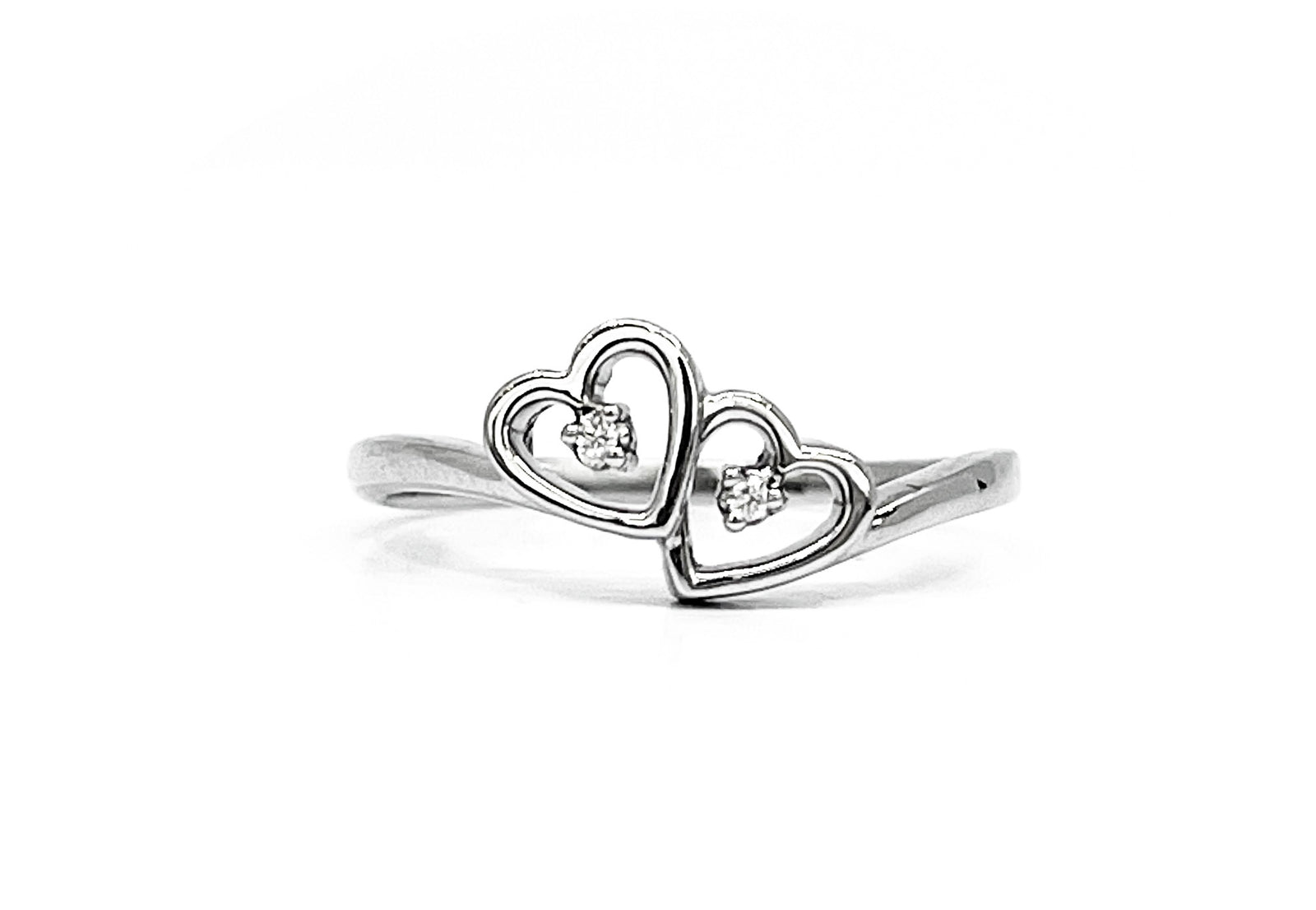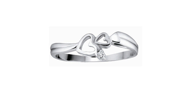 10K White Gold 0.02cttw Diamond Heart Ring, Size 6.5