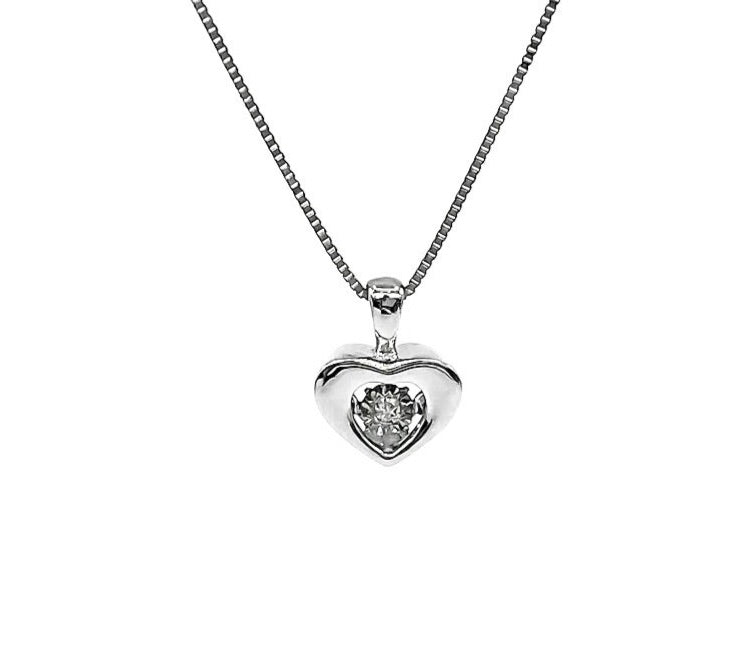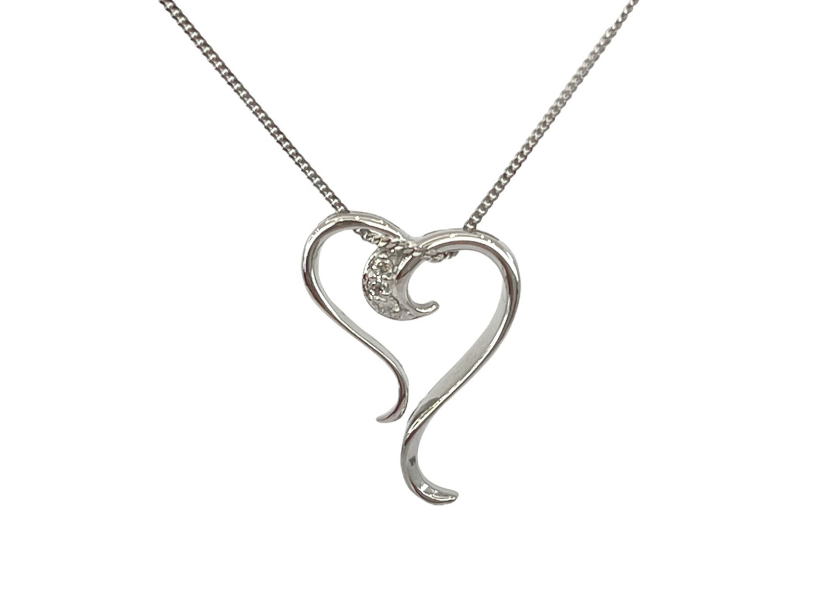 10K White Gold 0.01cttw Diamond Heart Necklace, 18"