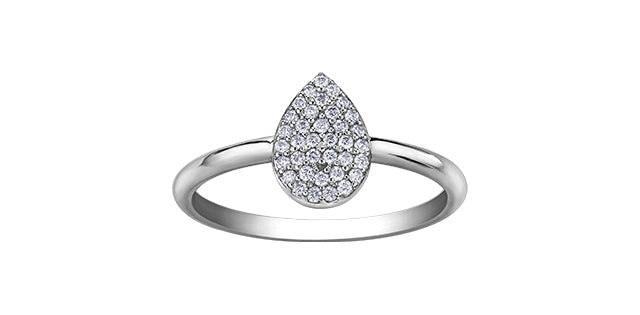 10K White Gold 0.15cttw Pave Pear Shape Diamond Engagement Ring
