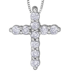 10K White Gold 0.15 cttw Diamond Cross Pendant, 18"
