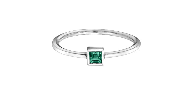 10K White Gold 0.15cttw Genuine Emerald Princess Cut Ring, size 6.5