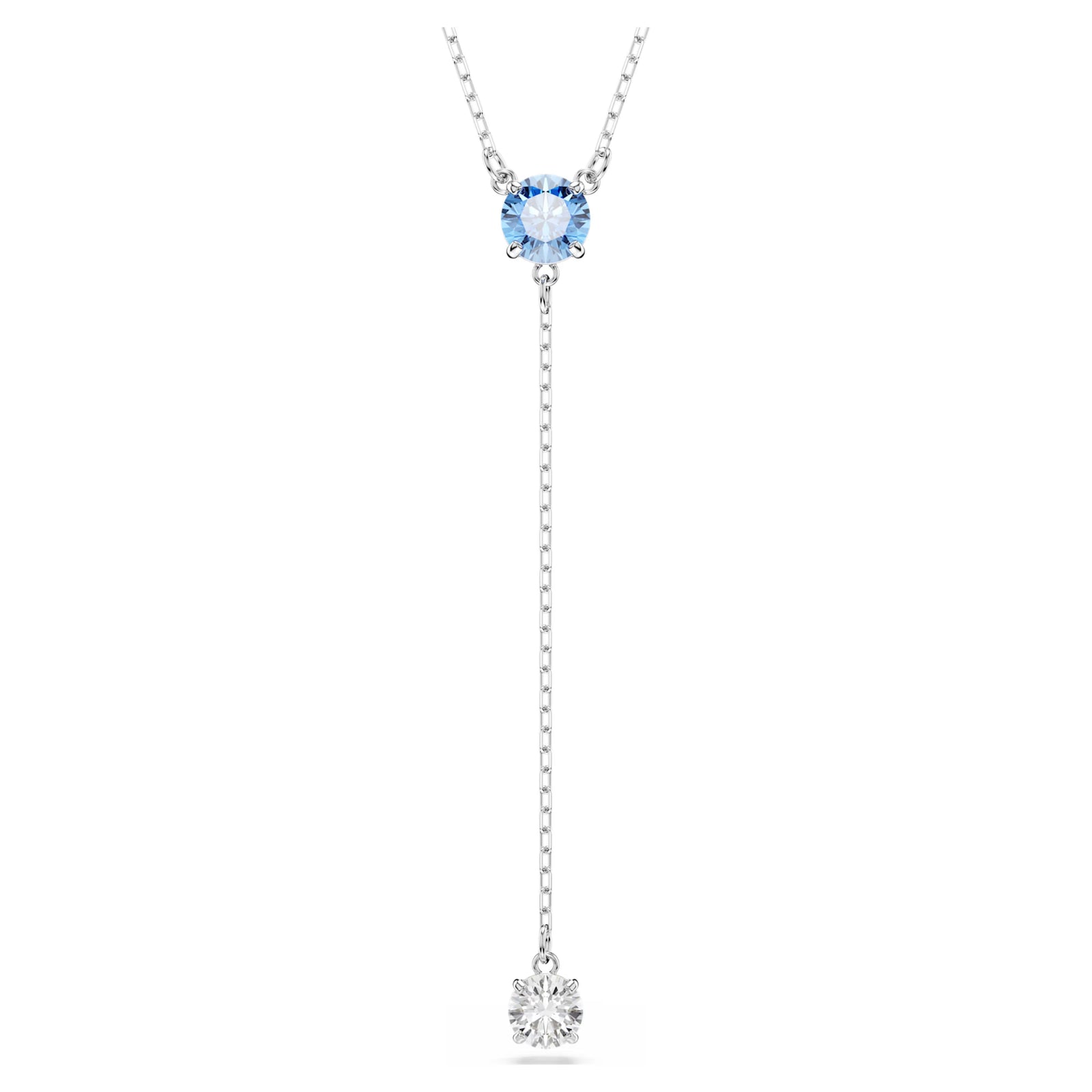 Swarovski Stilla Attract Y necklace, Round cut, Blue, Rhodium plated 5734249