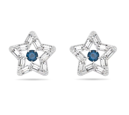 Swarovski Stella Stud Earrings, Star, Blue, Rhodium Plated 5639188-Discontinued