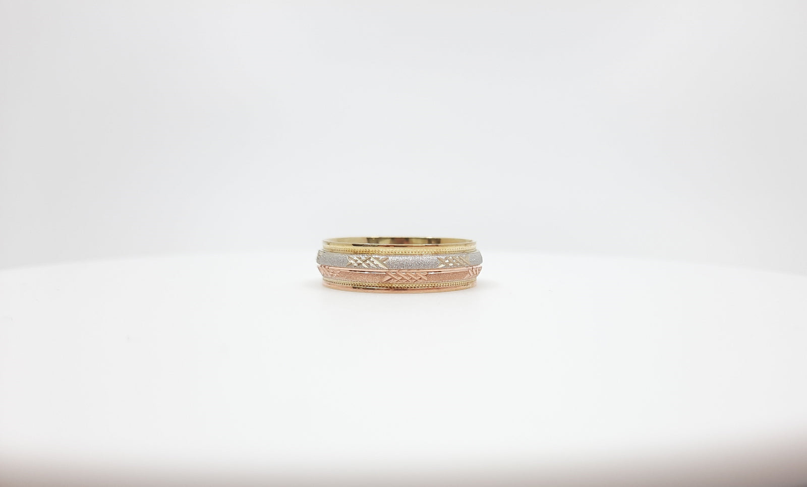 Tracking - 10K 3 Tone Wedding Band Fancy Pattern
