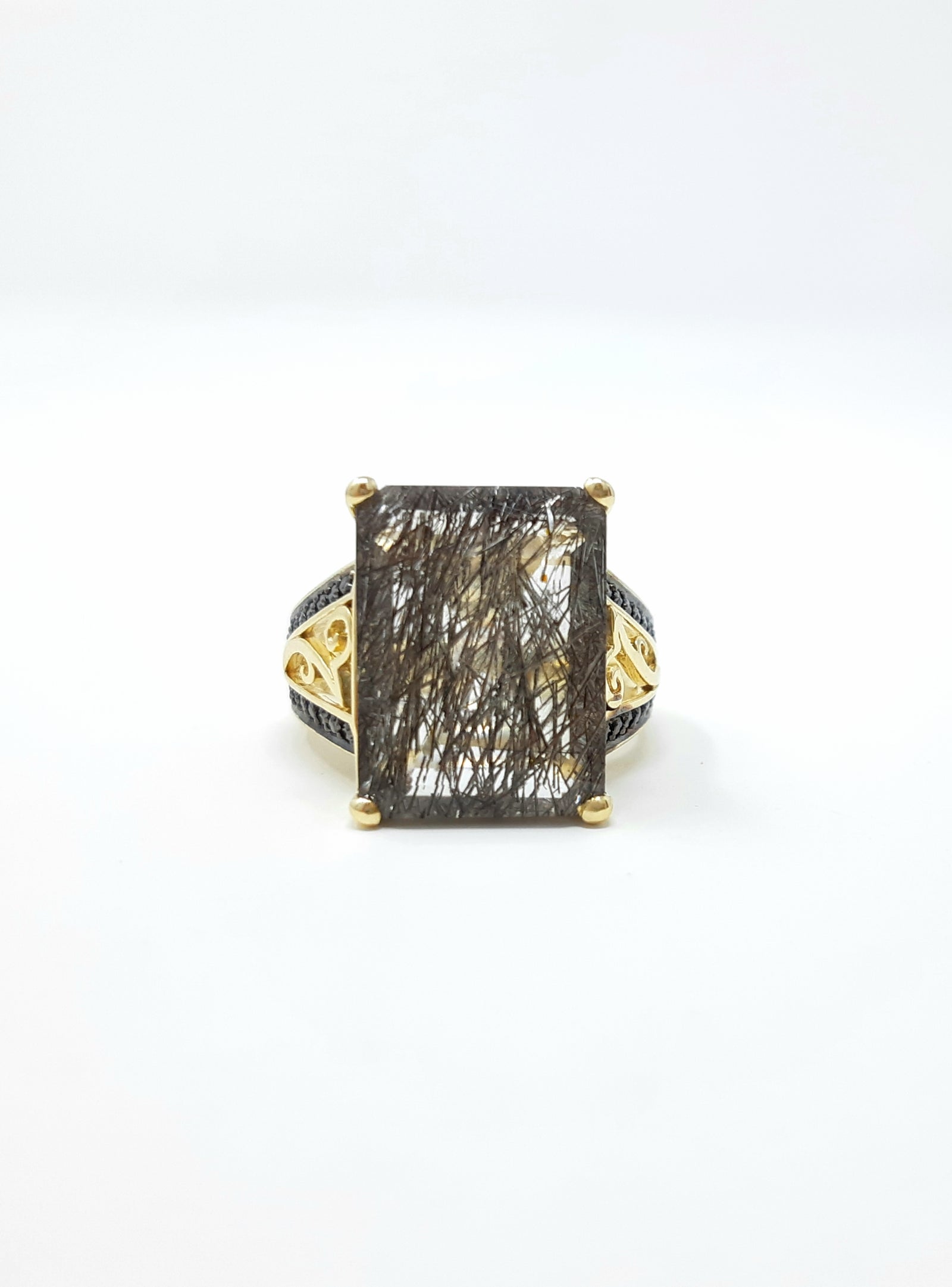Tourmalinated Quartz and Black Diamond Ring