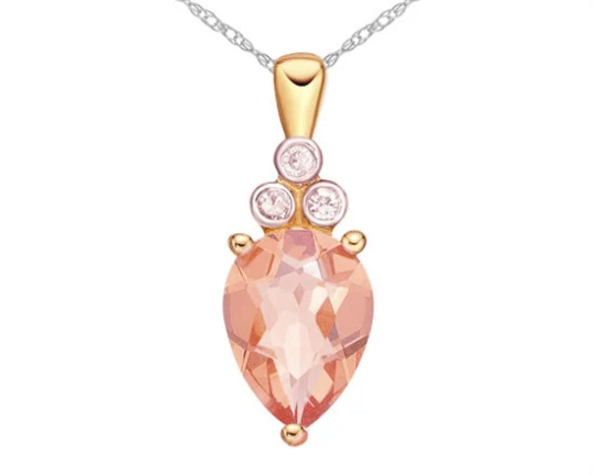 TRACKING - 10K Rose Gold 8x6mm Pear Cut Morganite and Diamond Pendant, 18"
