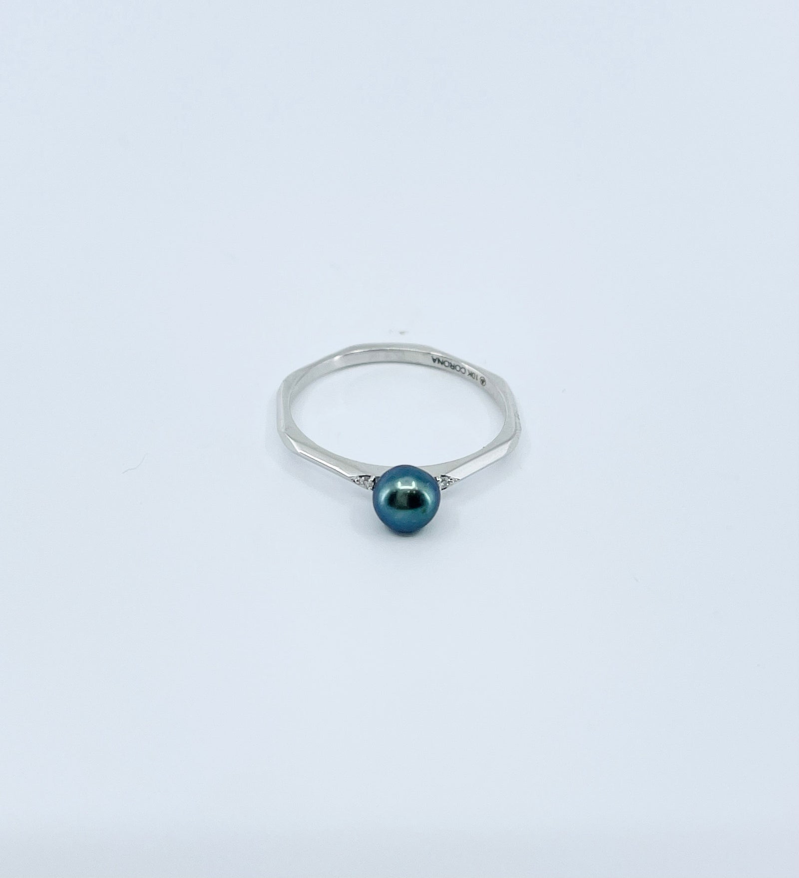 Tracking - 10K White Gold 5mm Color Enhanced Black Pearl Ring, size 6.5