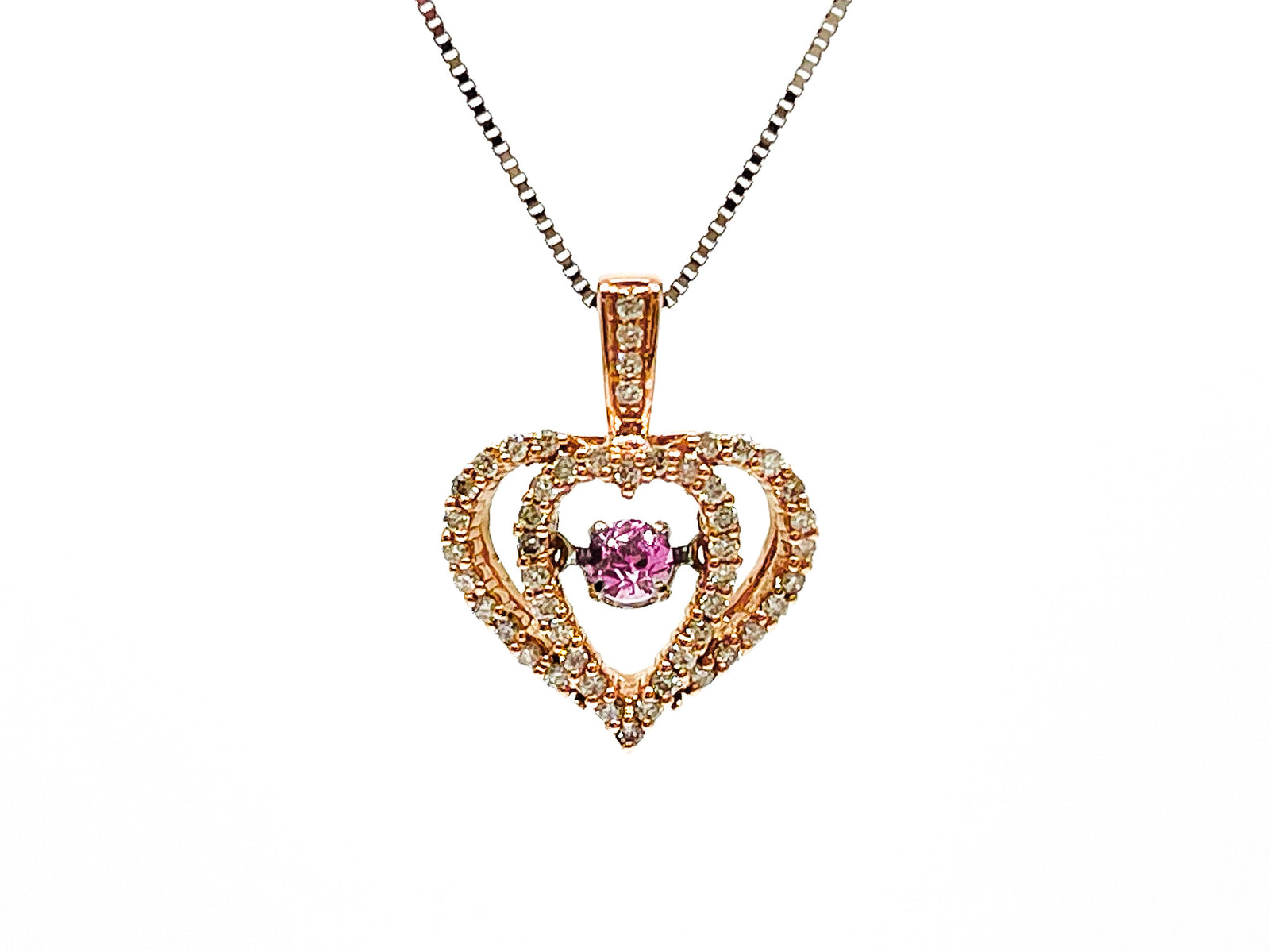 Tracking - 10K Rose & White Gold Pink Sapphire and Diamond 0.17cttw Necklace,18"