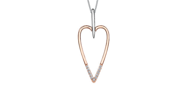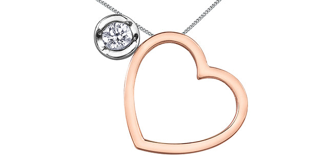 10K White & Rose Gold 0.05cttw Canadian Diamond Heart Pendant, 18"