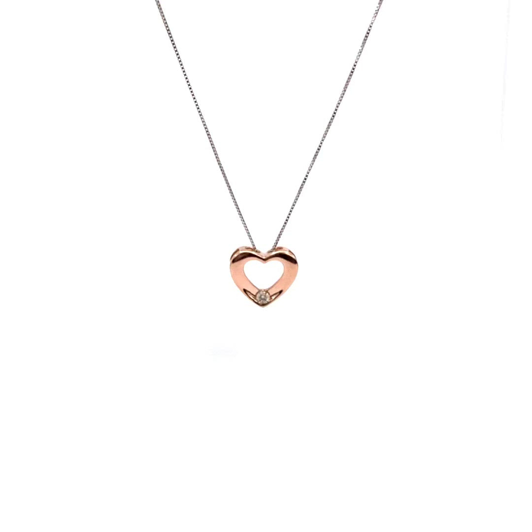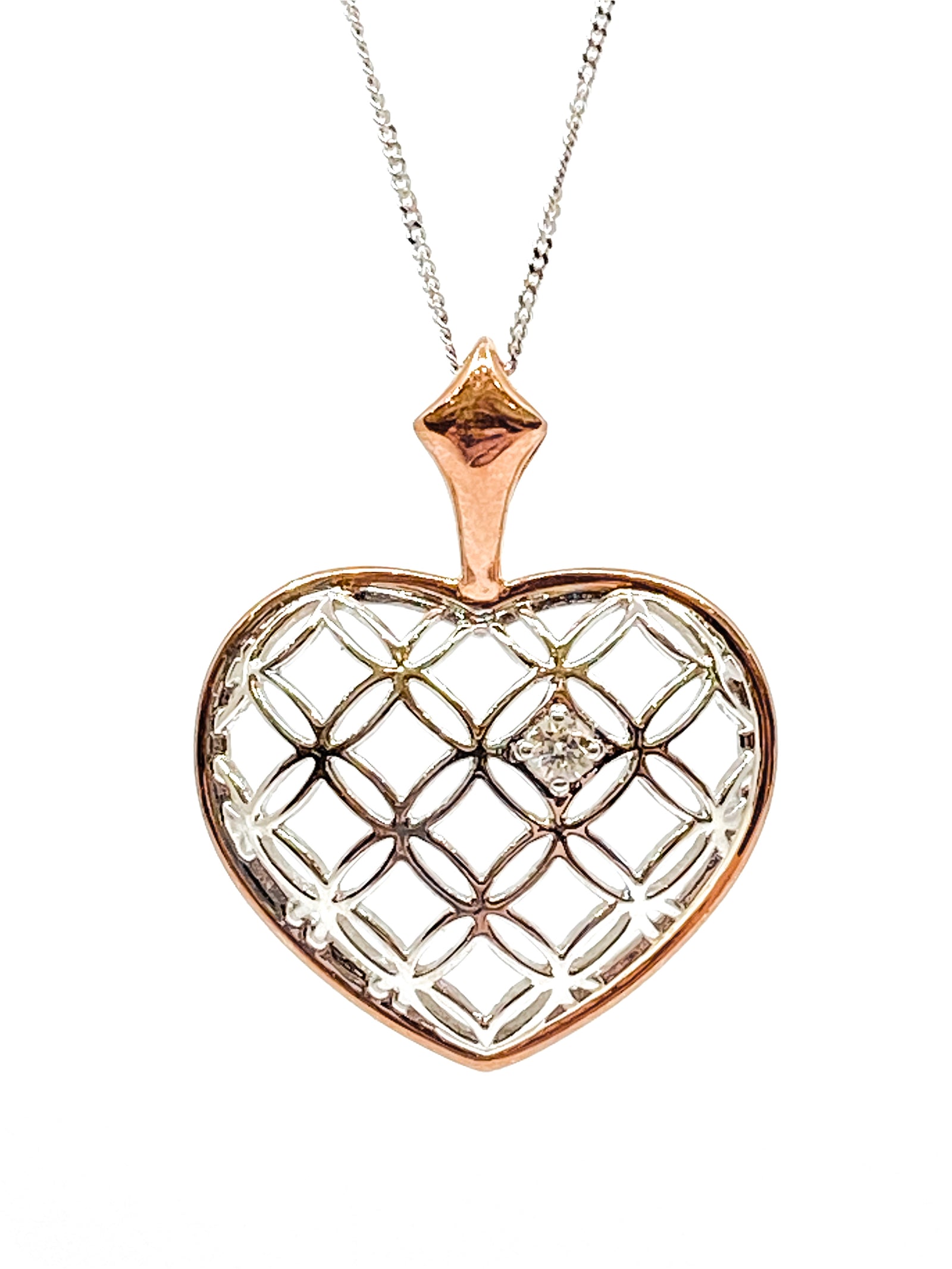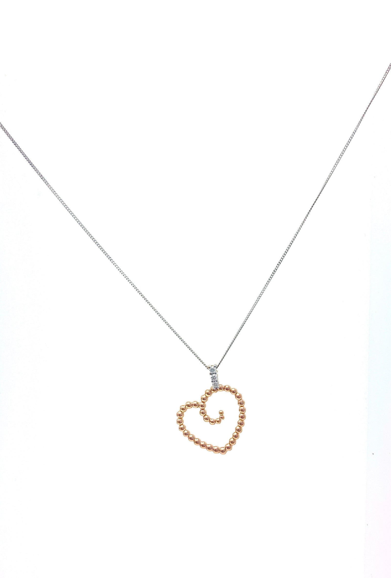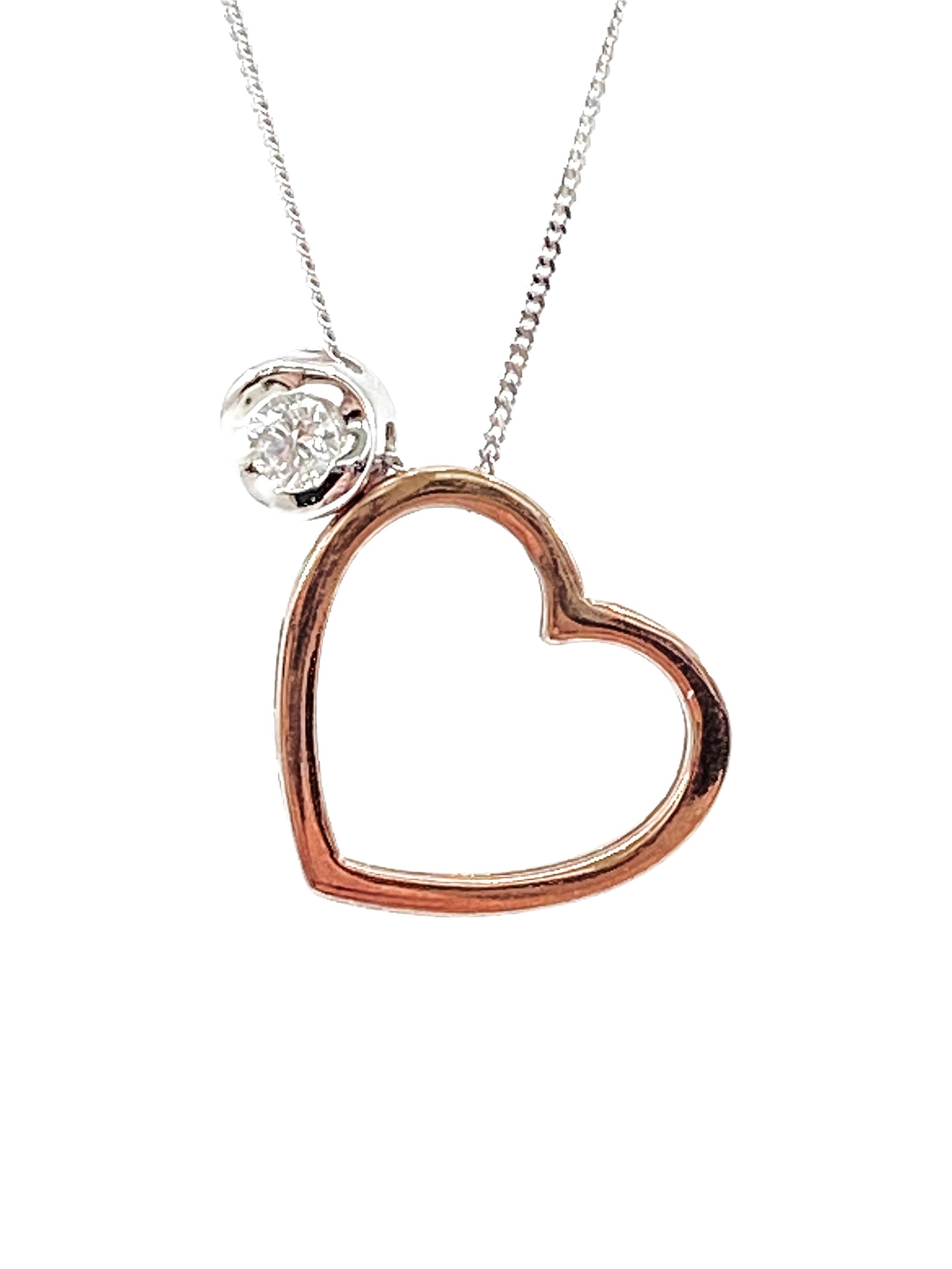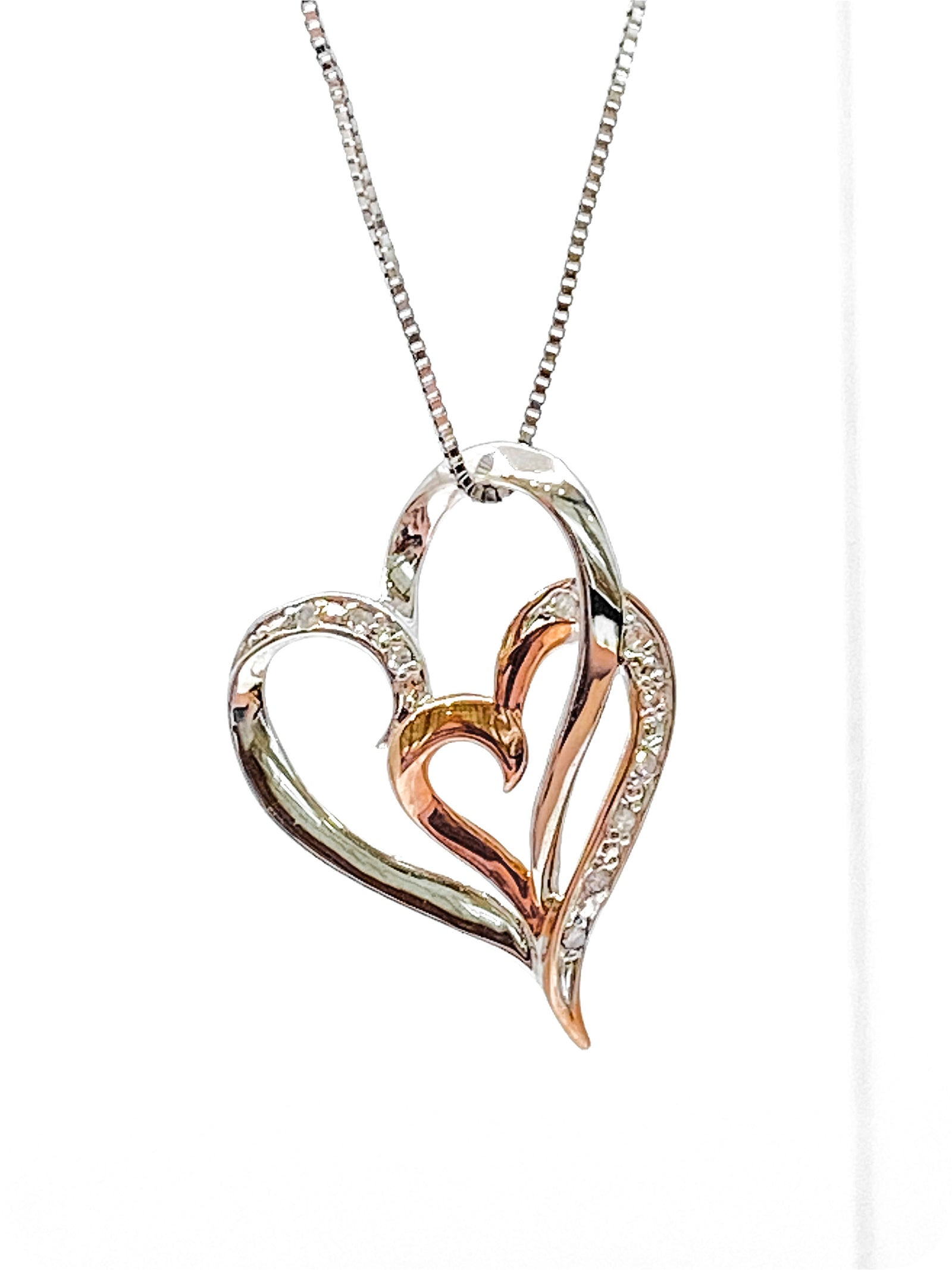 10K White & Rose Gold 0.09cttw Round Brilliant Canadian Diamond Heart Necklace