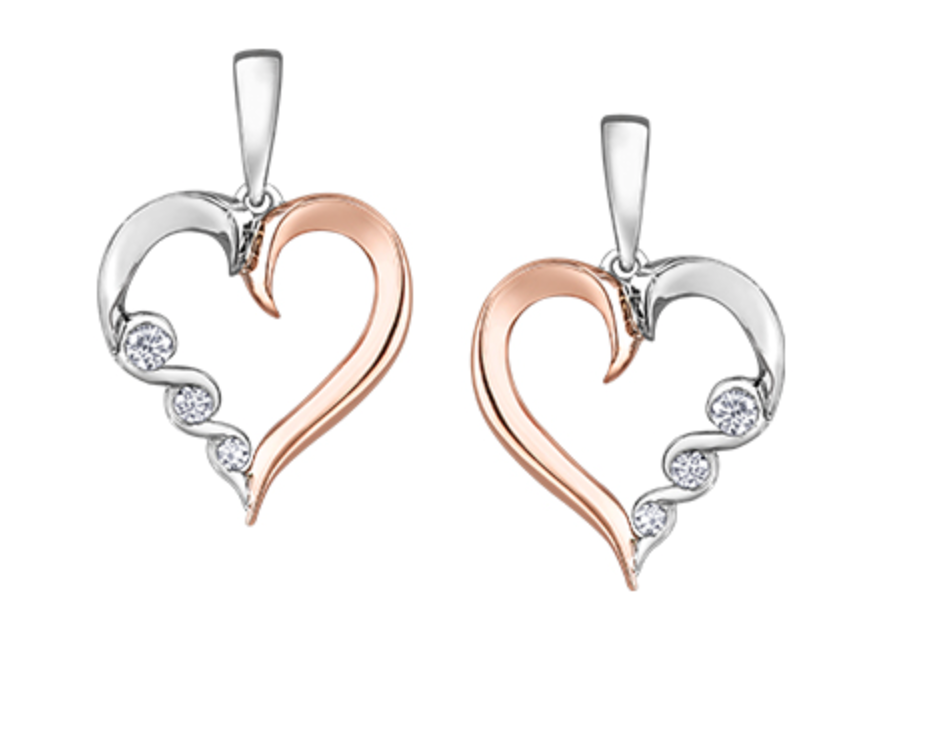 10K White & Rose Gold 0.08cttw Round Cut Canadian Diamond Heart Earrings