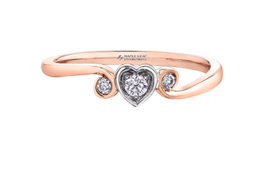 10K White & Rose Gold 0.10cttw Heart Diamond Ring - Size 6.5
