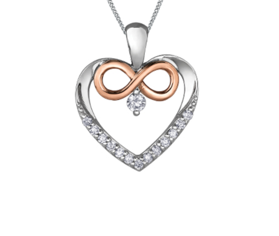 10K White & Rose Gold 0.03cttw Canadian Diamond Heart and Infinity Necklace, 18"