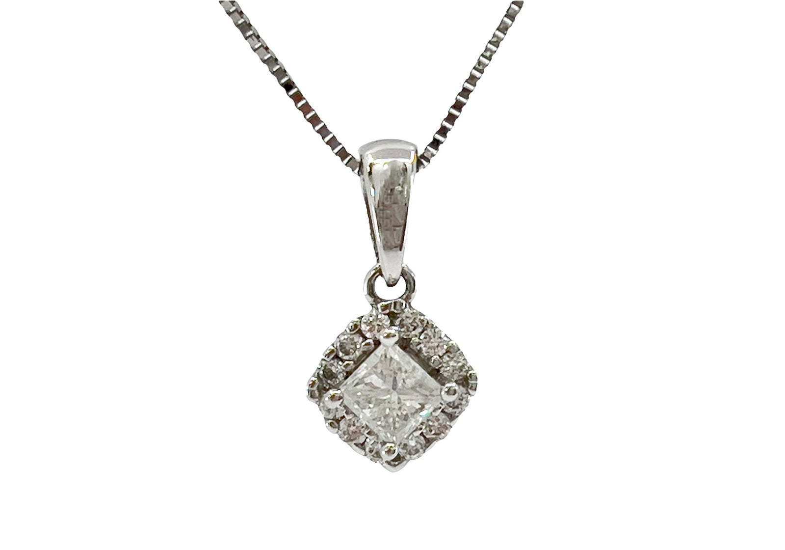 14K White Gold 0.34cttw Princess Cut Canadian Diamond Pendant, 18"
