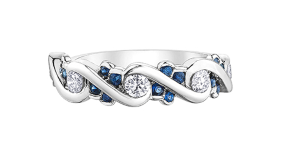 14k White Gold 0.36cttw Diamond & Sapphire Ring, size 6.5