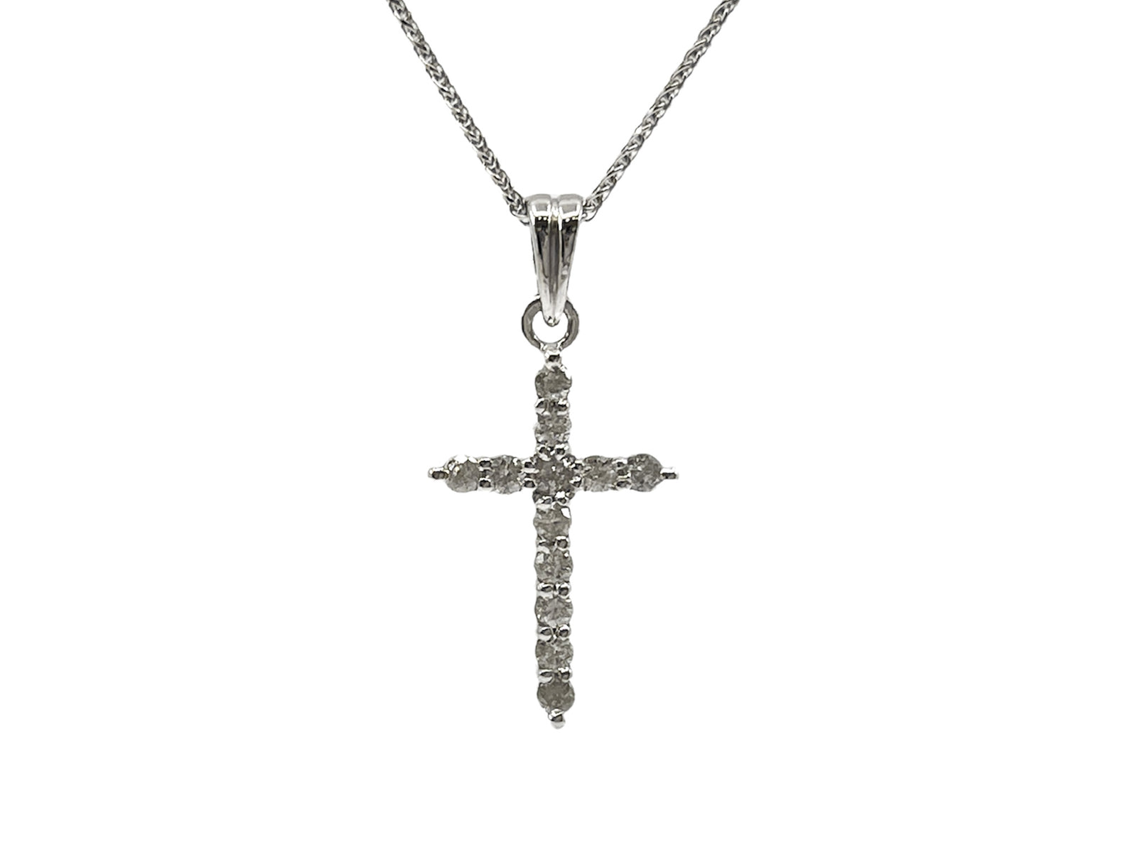 14K White Gold 0.35 cttw Diamond Cross Pendant, 18"