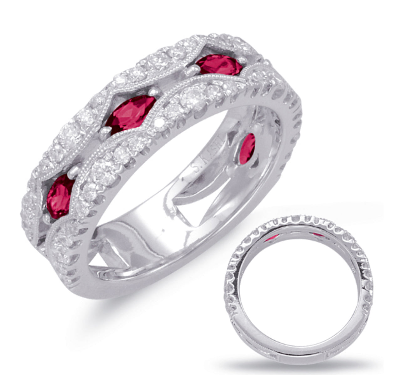 14K White Gold 0.65cttw Ruby and 0.58cttw Diamond Ring - Size 7