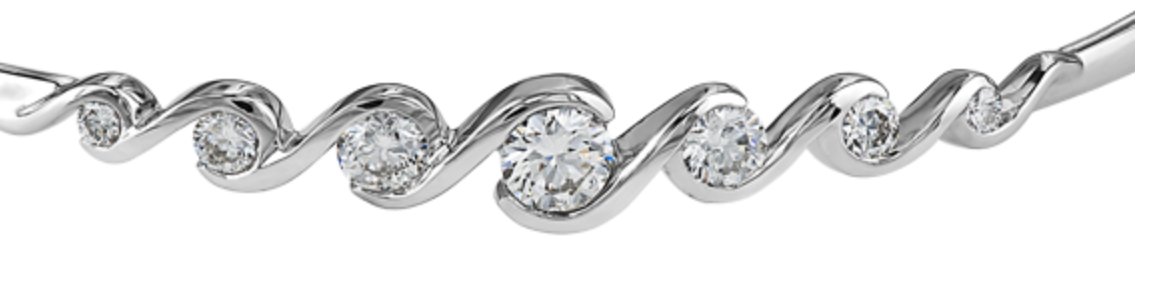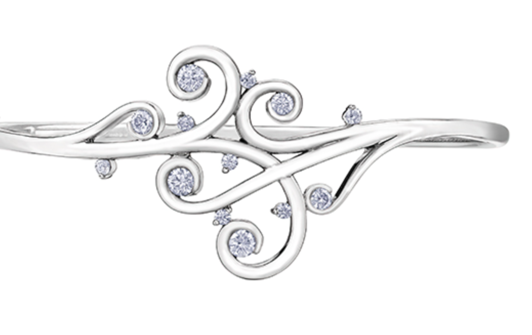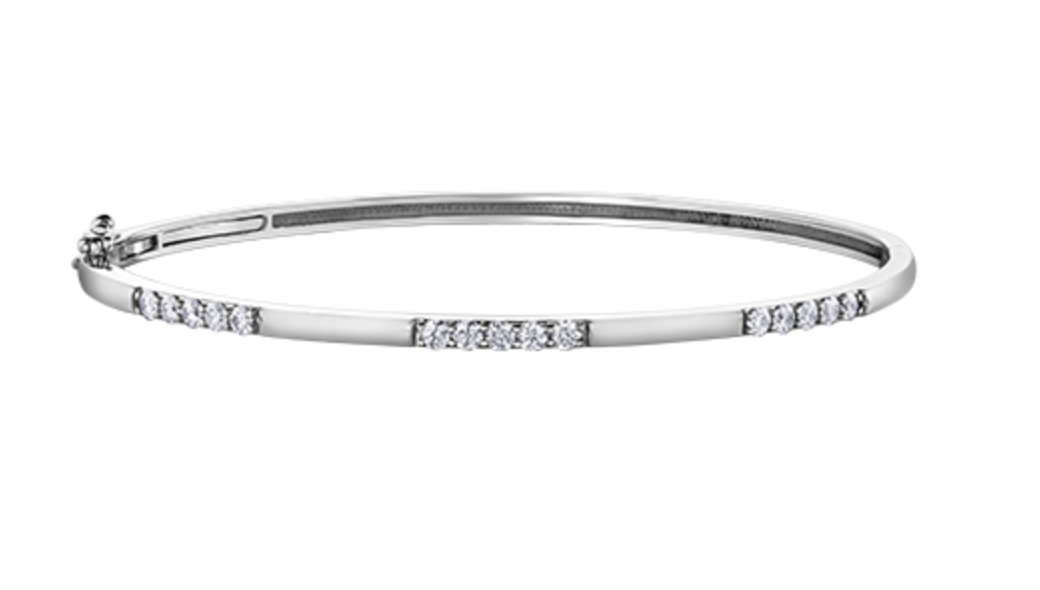 14K White Gold 0.66cttw Diamond Bangle, 7"