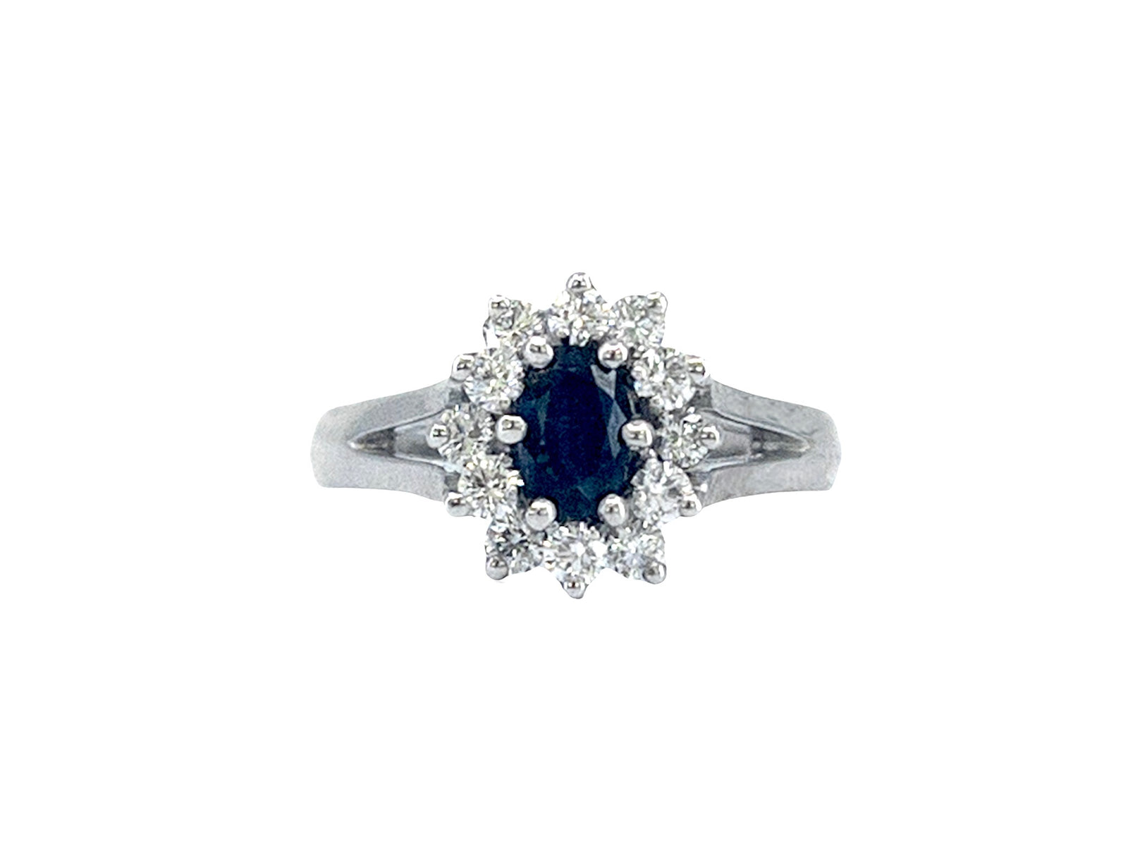 14K White Gold 0.65cttw Genuine Sapphire & 0.39cttw Diamonds Ring, size 6.5
