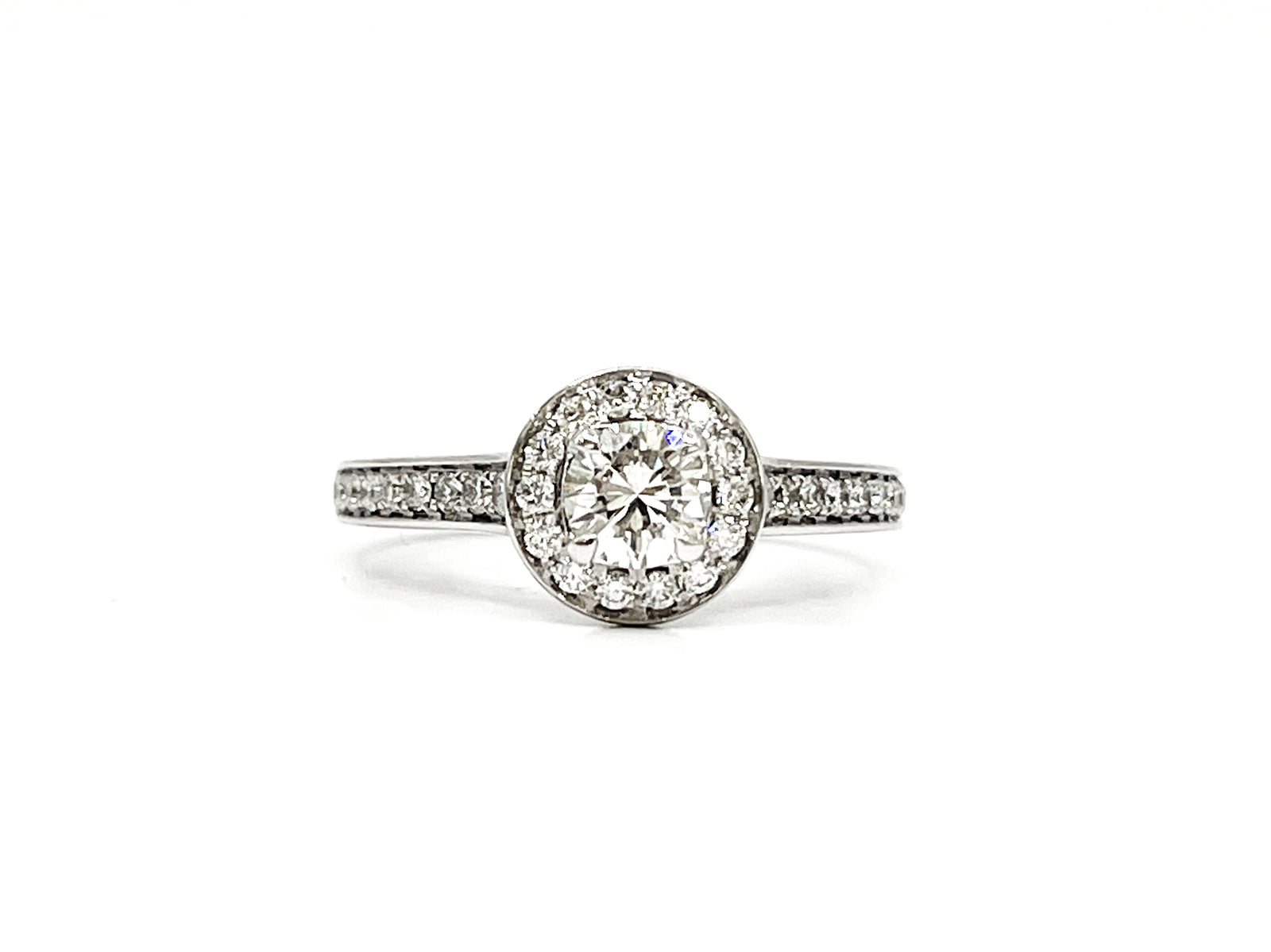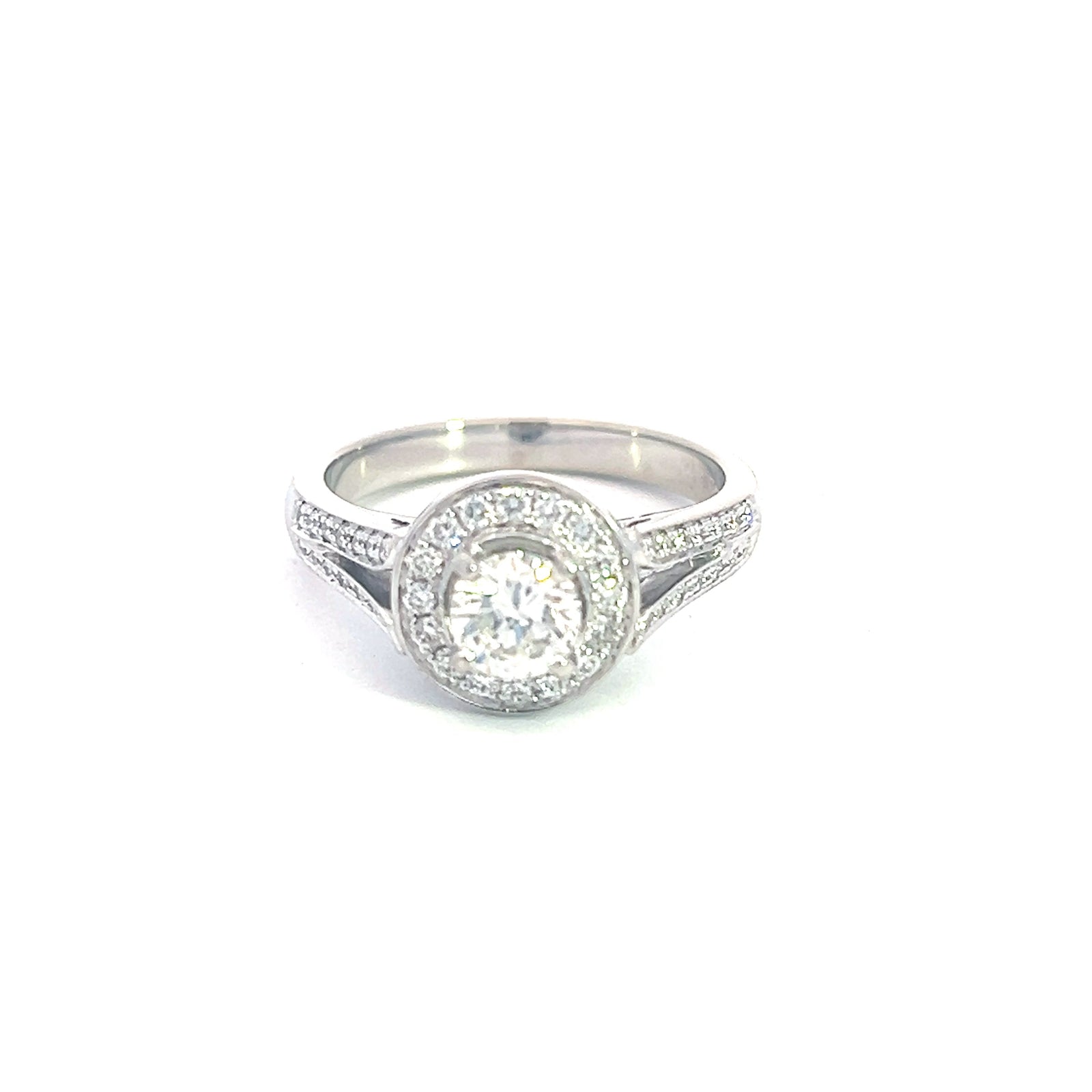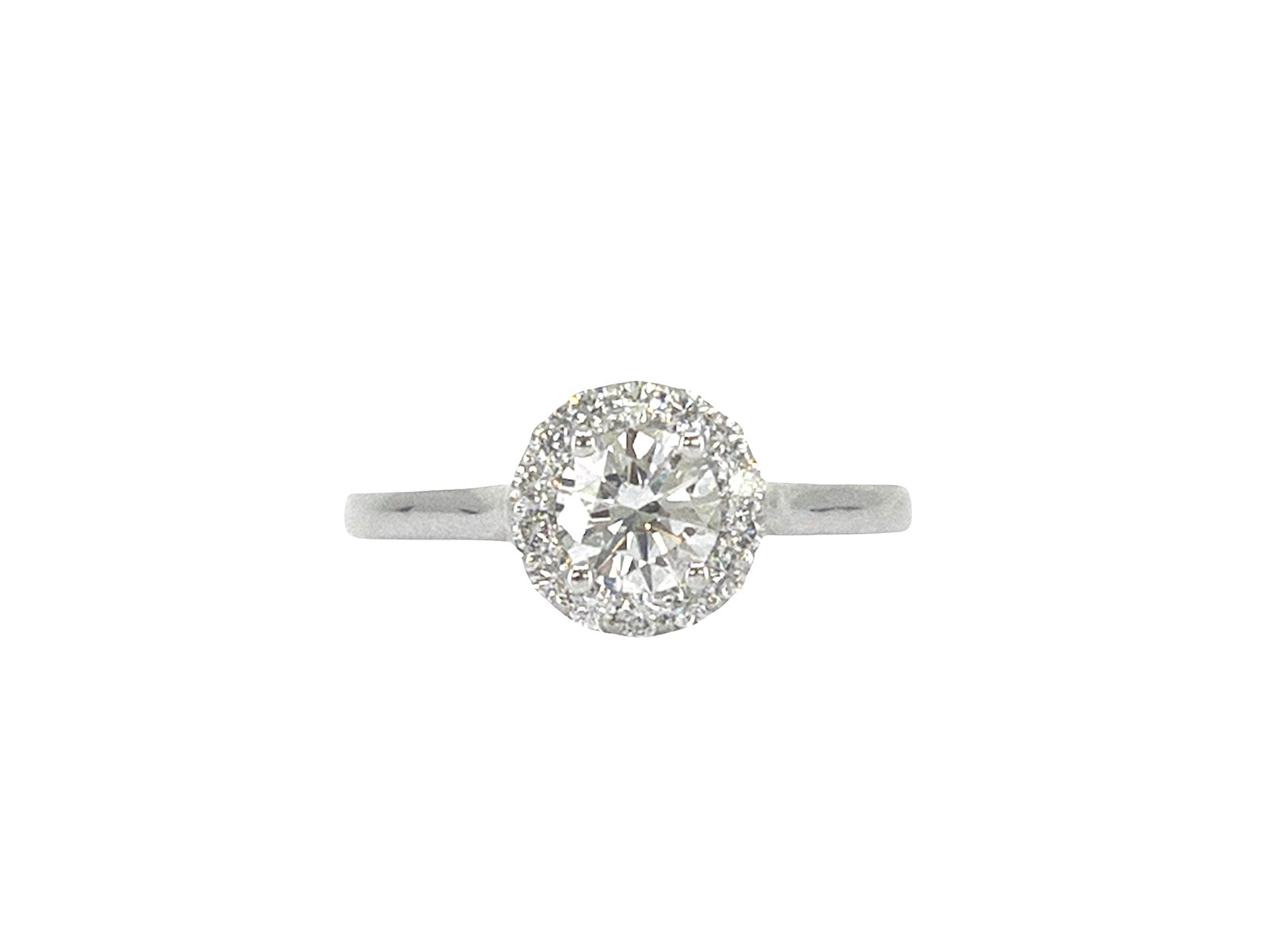 14K White Gold 0.77cttw Diamond Halo Engagement Ring, size 6