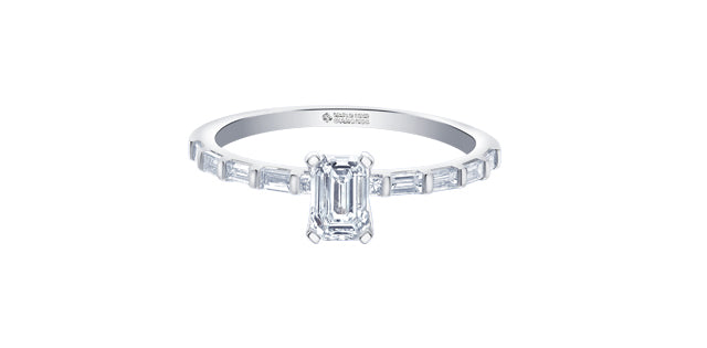 14K White Gold 0.87cttw Emerald Cut Diamond Engagement Ring, Size 6.5