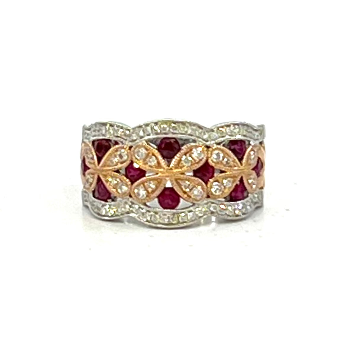 14K White Gold 0.75cttw Ruby and 0.35ttw Diamond Ring - Size 7