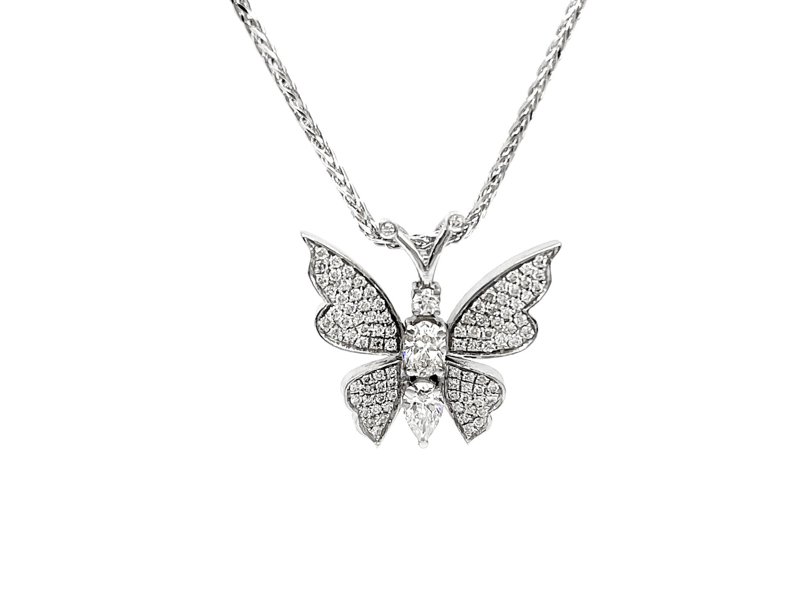 14K White Gold 0.86cttw Lab Grown Diamond Halo Necklace with Wheat Chain