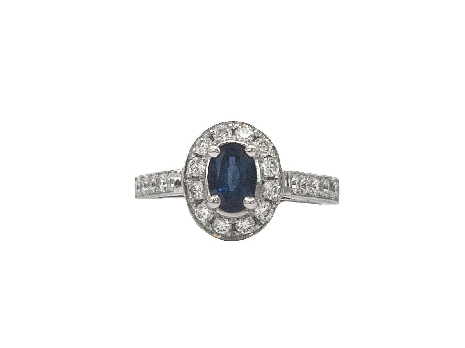 14K White Gold 0.80 cttw Blue Sapphire and White Diamond Ring