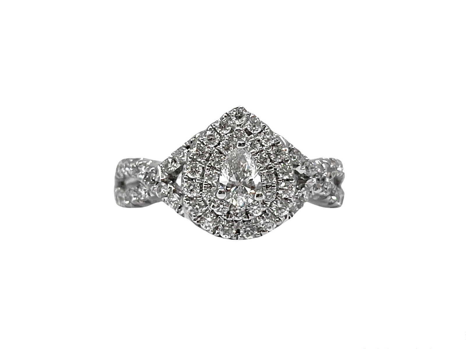 14K White Gold 0.90cttw Pear Cut Diamond Halo Engagement Ring, size 6.5