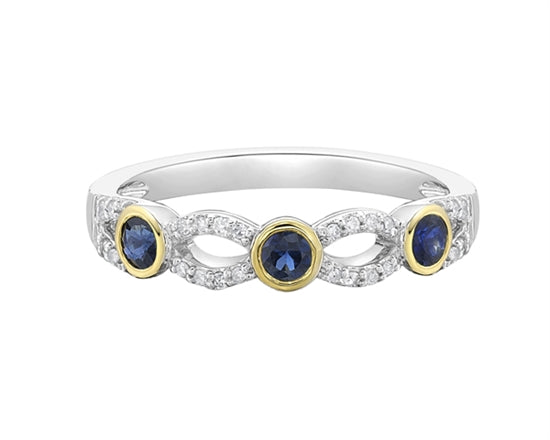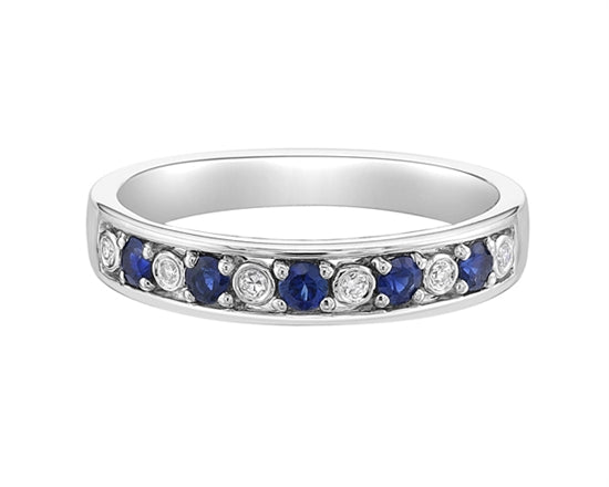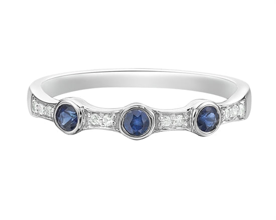 14K White Gold 2.80mm Round Cut Sapphire and 0.10cttw Diamond Stack Ring - Size 7