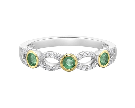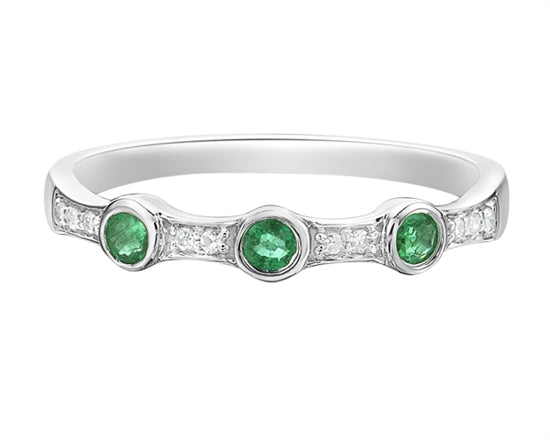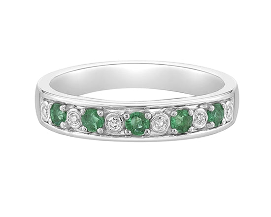 14K White Gold 2.80mm Round Cut Emerald and 0.10cttw Diamond Ring - Size 7