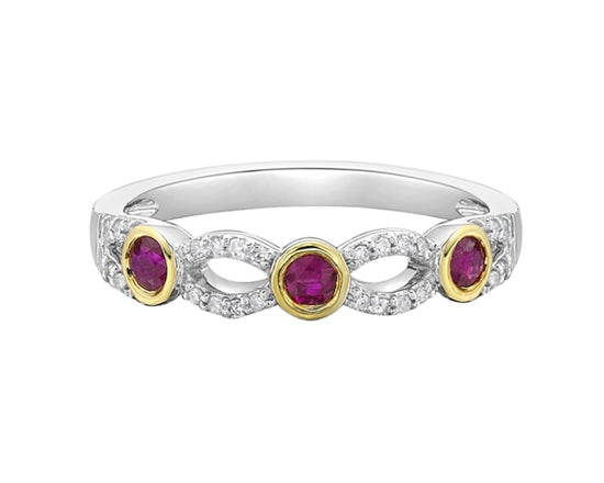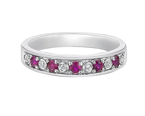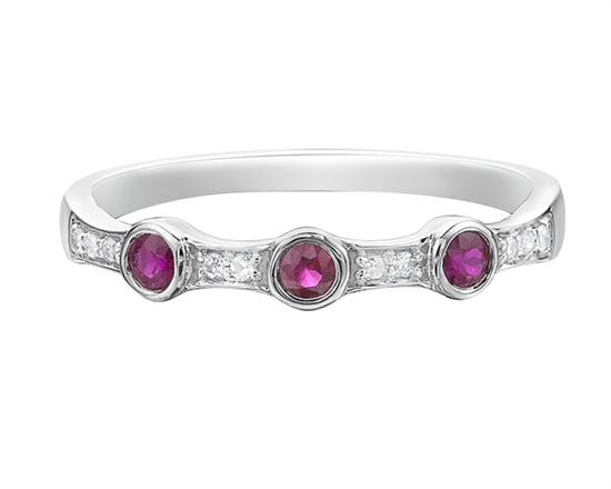 14K White Gold 2.80mm Round Cut Ruby and 0.10cttw Diamond Stacking Ring