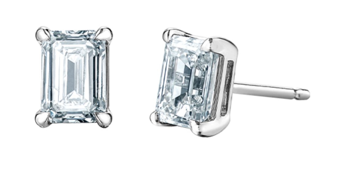 14K White Gold Lab Grown Emerald Shape Diamond Solitaire Claw Set Style Earrings