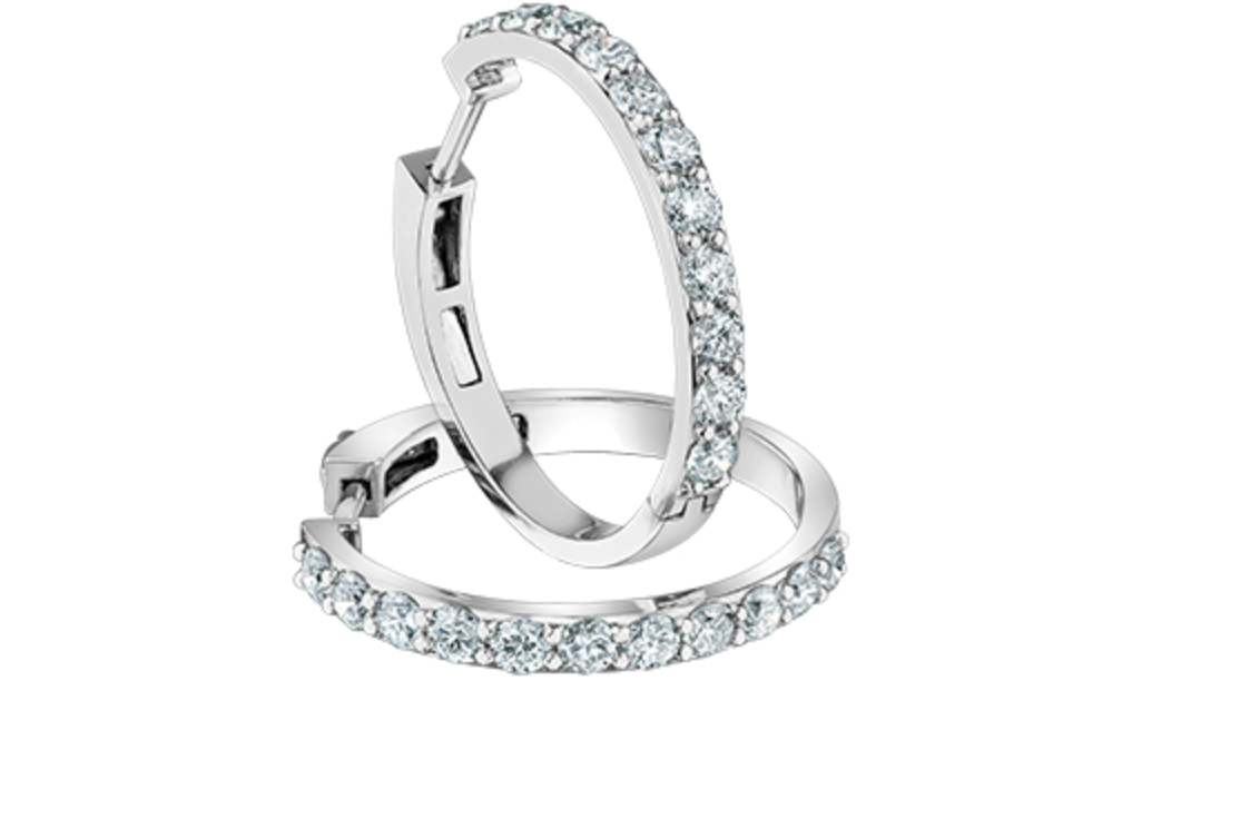 14K White Gold Lab Grown Diamond Claw Set Style Hoops