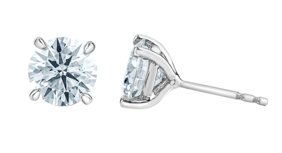 14K White Gold Lab Grown 1.03CTTW Round Brilliant Cut Diamond Solitaire Earrings
