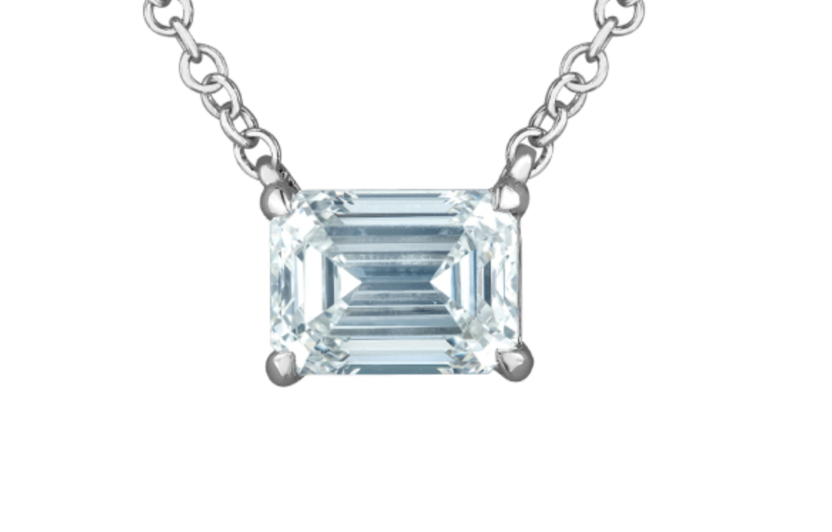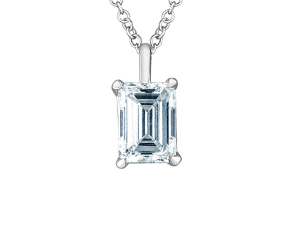 14K White Gold Lab Grown Emerald Cut Diamond Claw Set Pendant