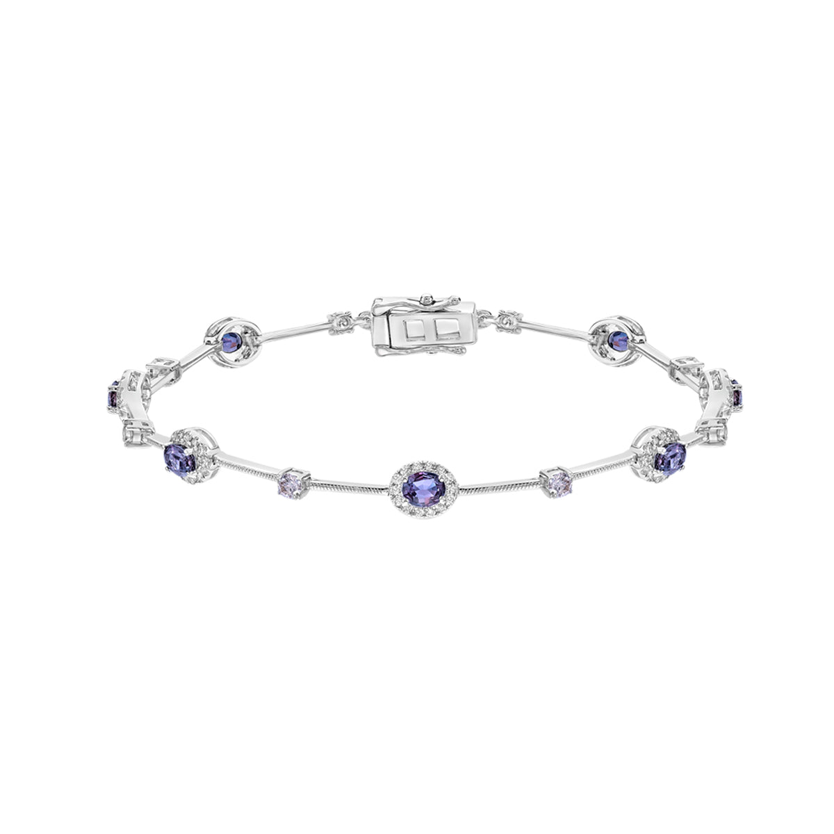 14K White Gold Oval Cut Natural Alexandrite and 0.85cttw Diamond Bracelet