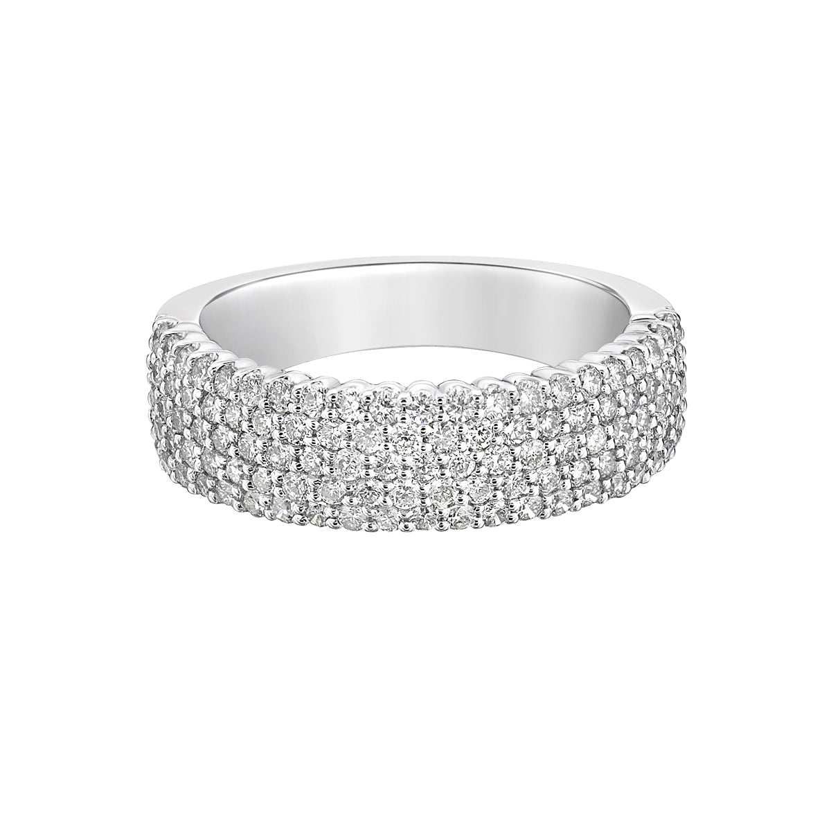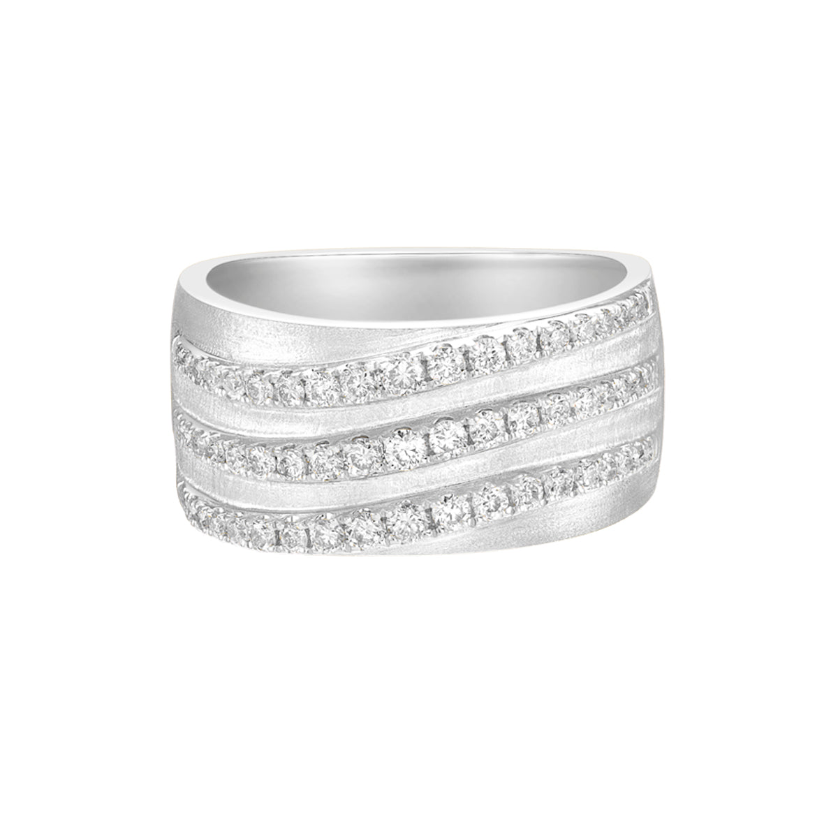 14K White Gold Multiple Row Pave-set Diamond Ring