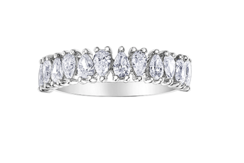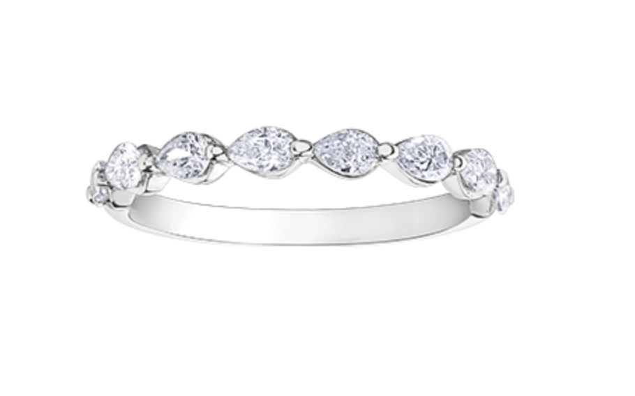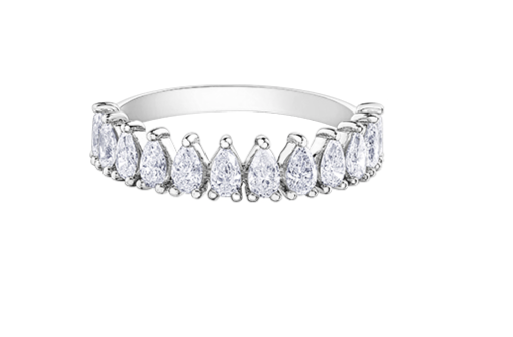 14K White Gold Pear Shape Cut Diamond Band - Size 6.5