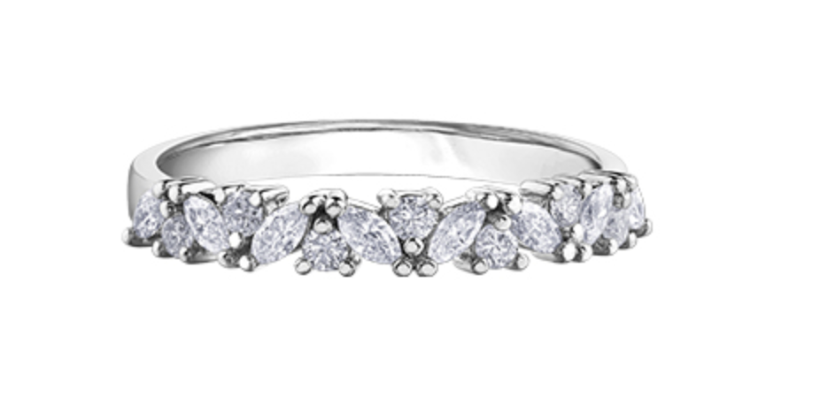 14K White Gold Marquise Cut Diamond Band - Size 6.5