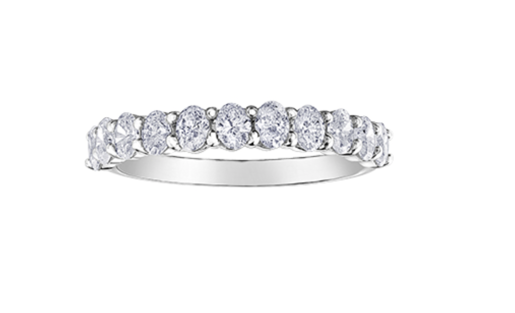 14K White Gold Oval Cut Diamond Band - Size 6.5