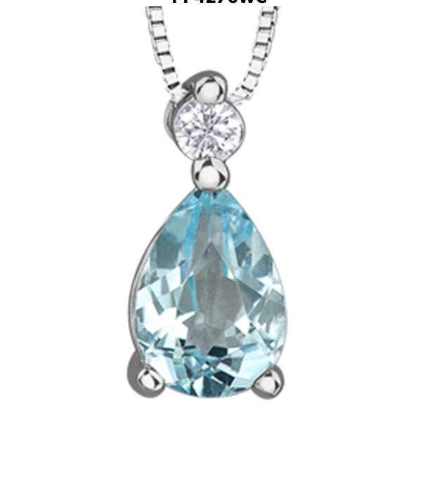 14K White Gold Pear Shape Aquamarine & 0.04cttw Canadian Diamond Pendant