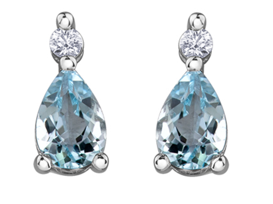 14K White Gold Pear Shape Aquamarine and 0.04cttw Diamond Stud Earrings